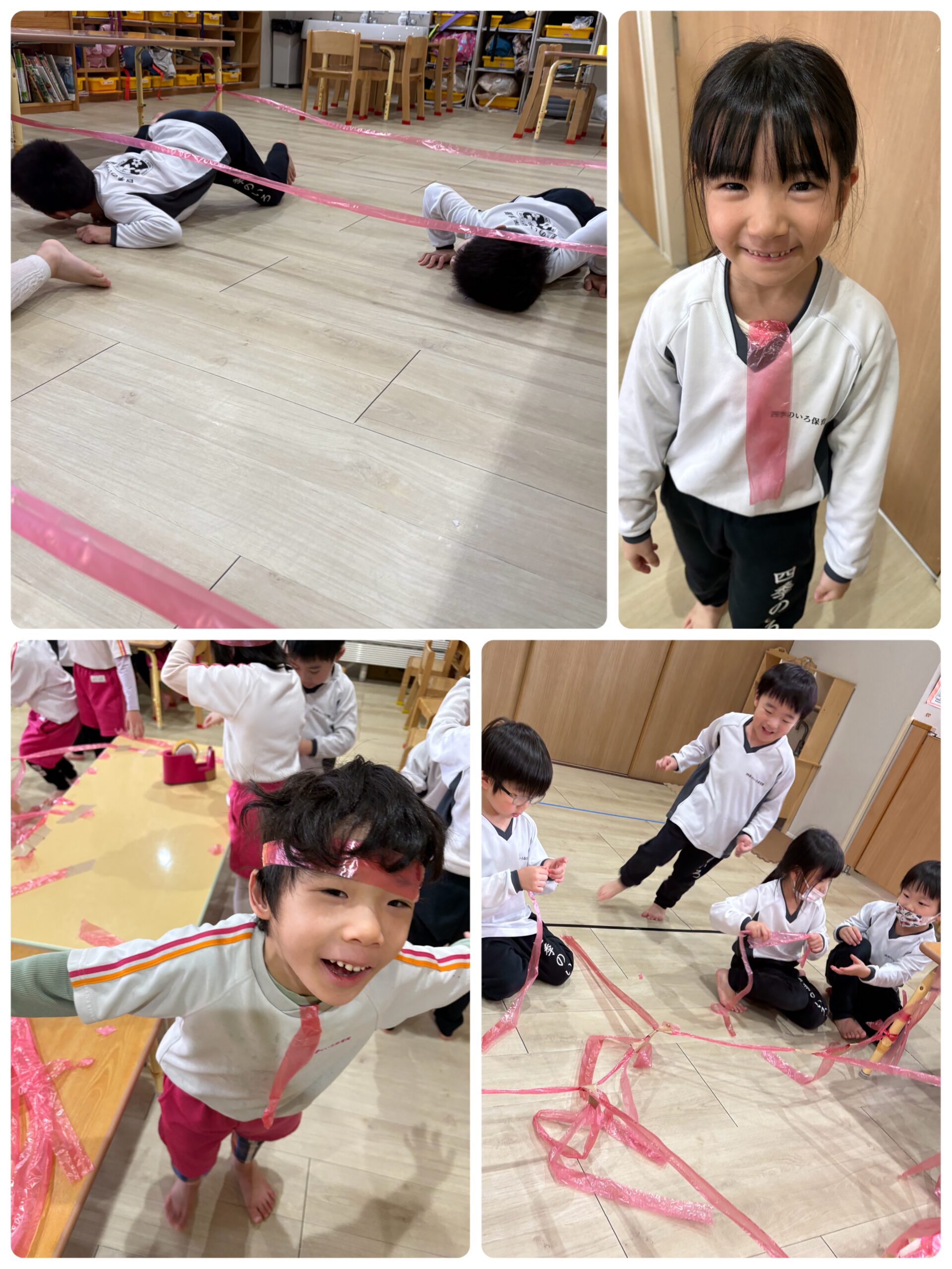体を動かした後は、スズランテープとテープを使って自由に遊びました⭐️