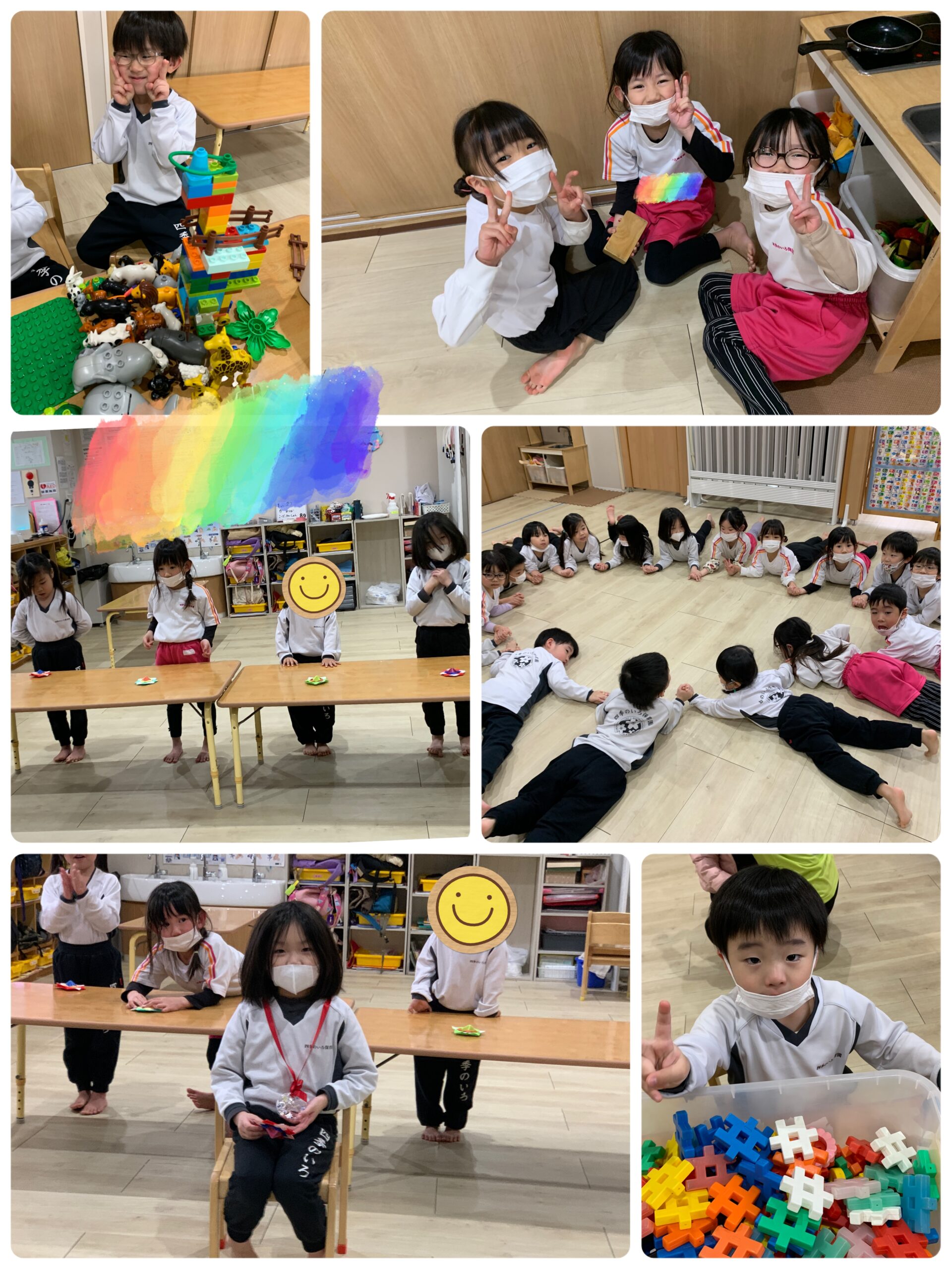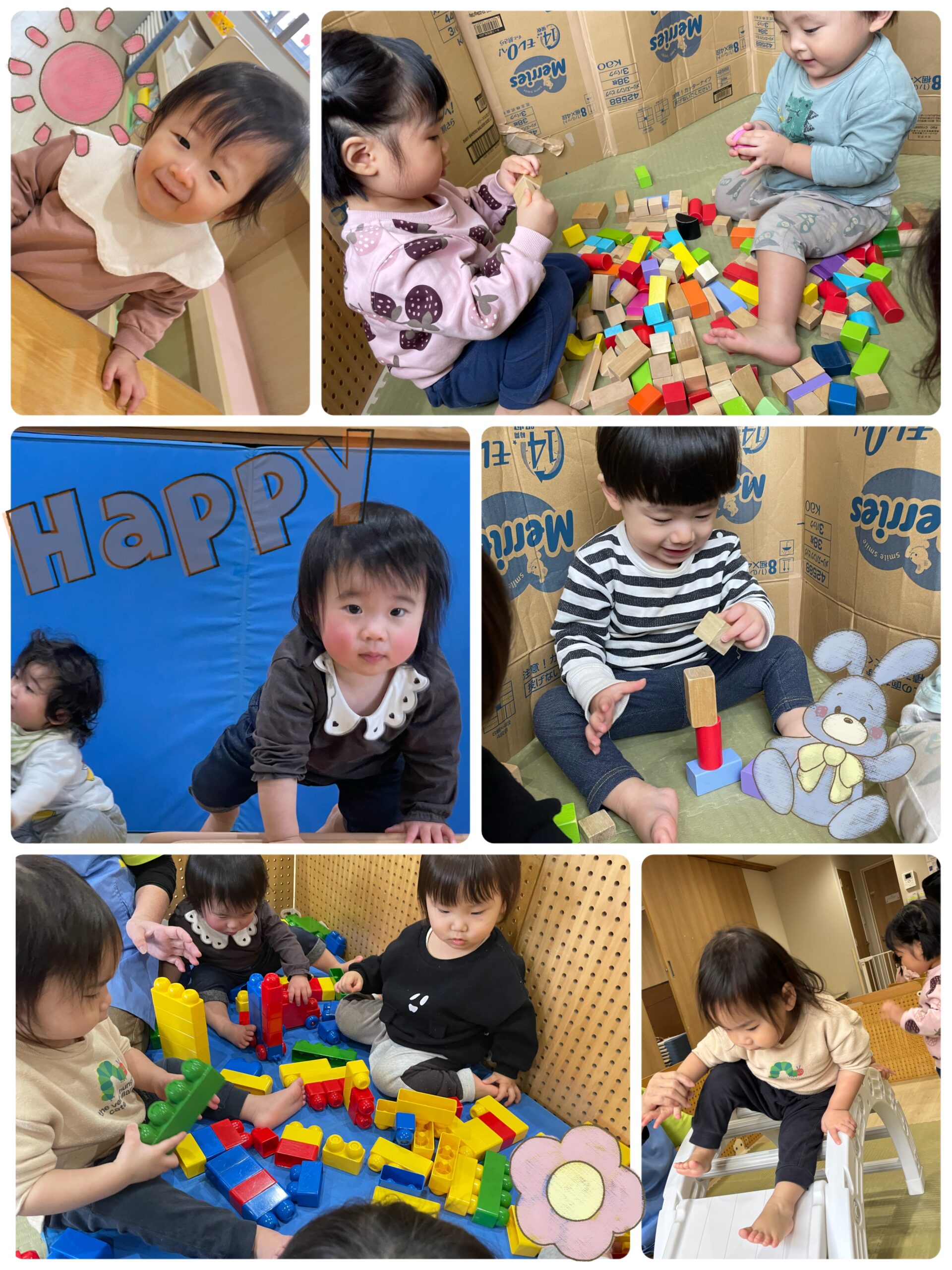 たくさん身体を動かすことができました!!またブロックやつみきを使ったおもちゃ遊びでは、集中して取り組む姿が見られました!!