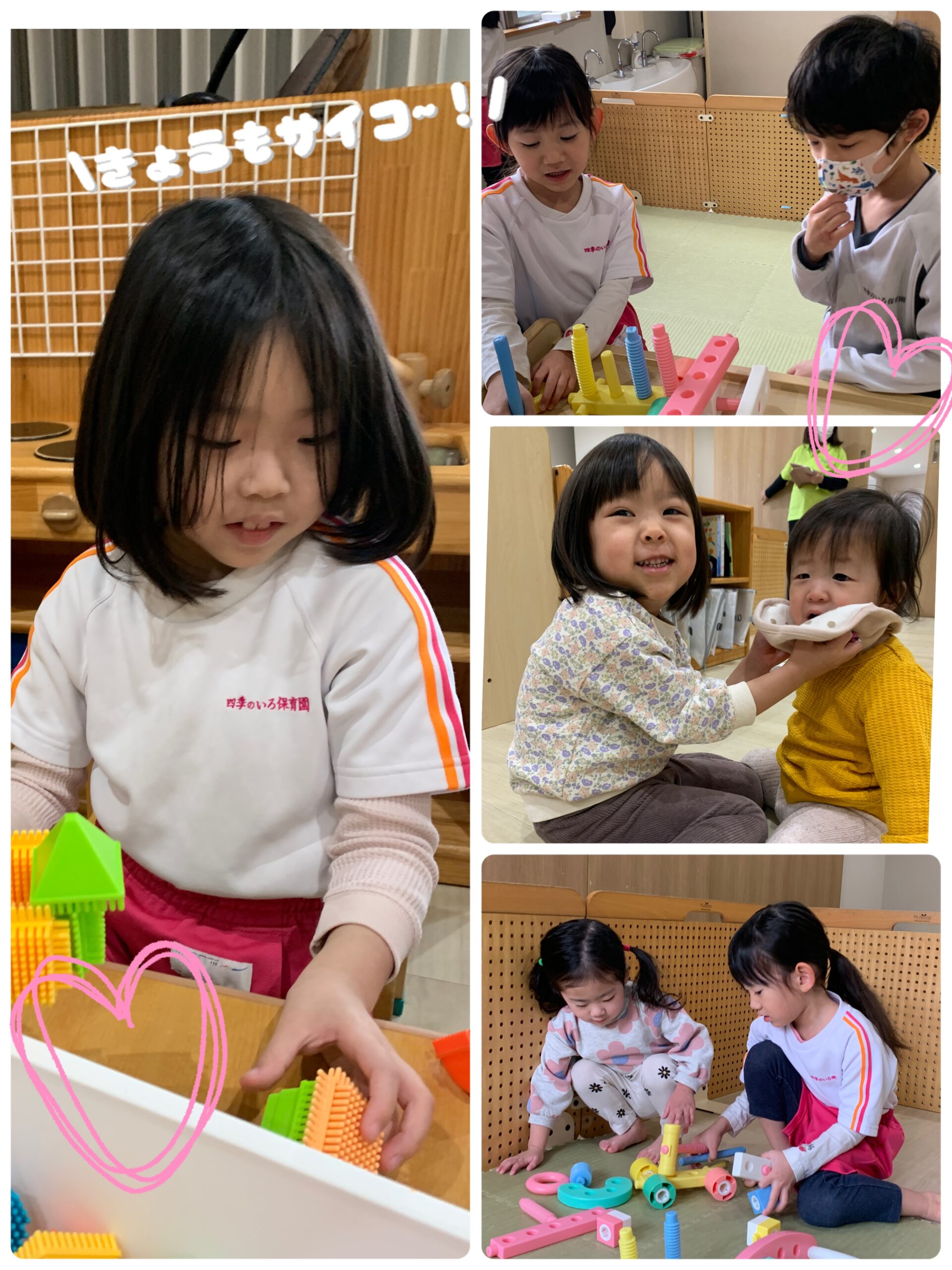 みんなで仲良くブロックで遊んだり