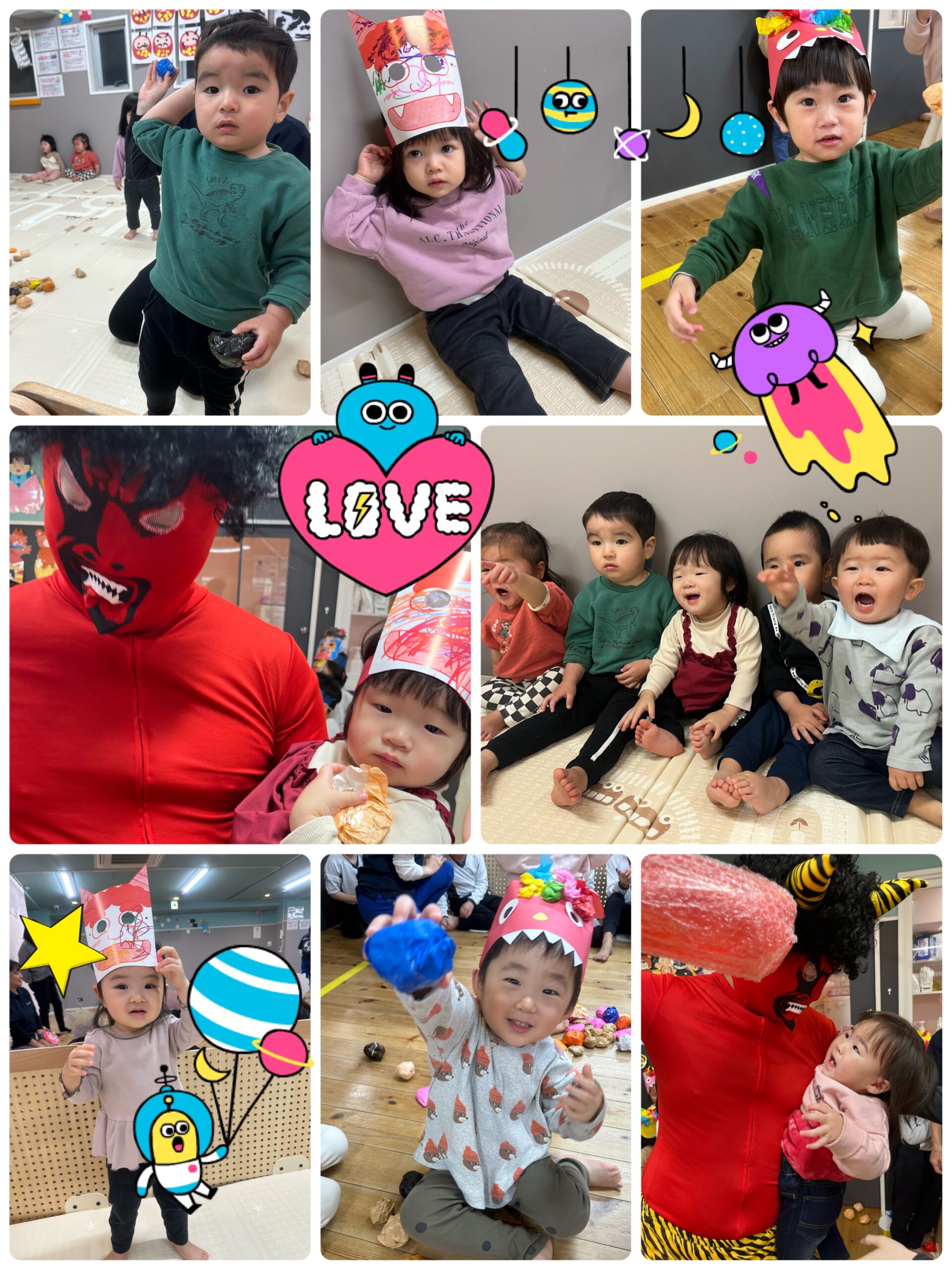 用意していた紙のボールを頑張って鬼さんに向けて投げて退治しました✨