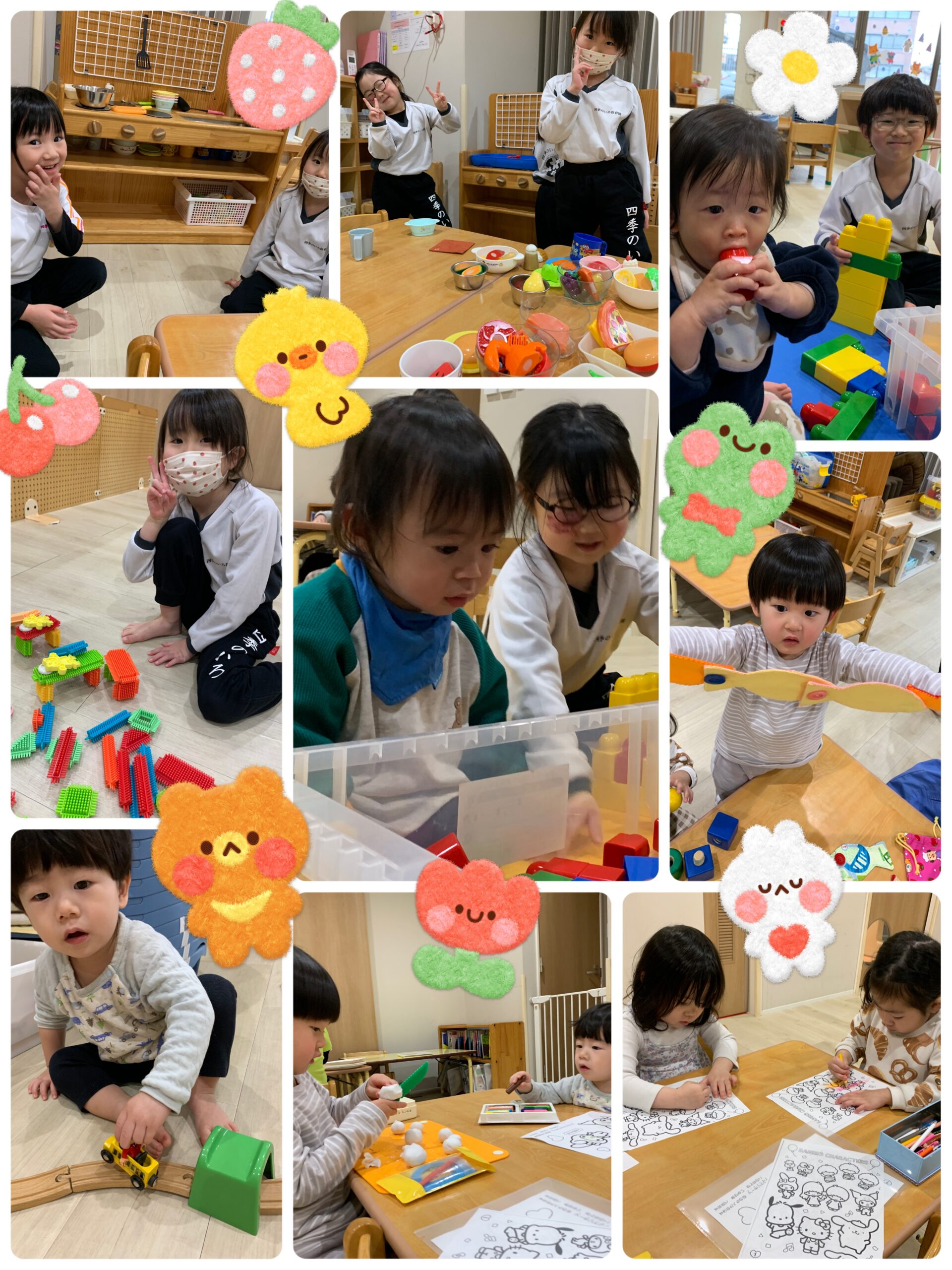 キッチンでおままごとやブロック、塗り絵やシールなど思い思いに好きな事をしてしましたよ☺️