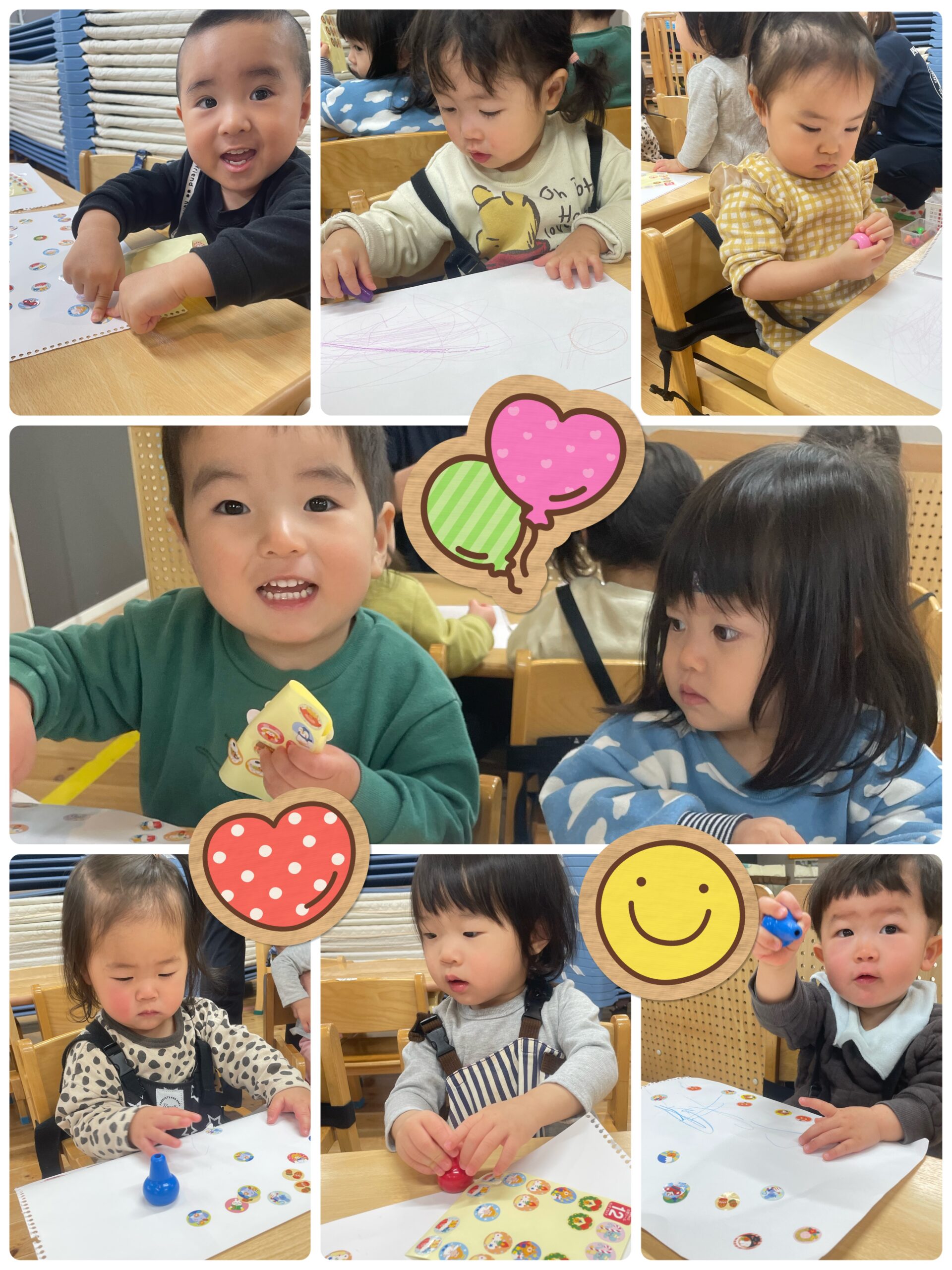 ひよこ組・りす組さんはシール貼りとお絵描きに挑戦しました🌈
