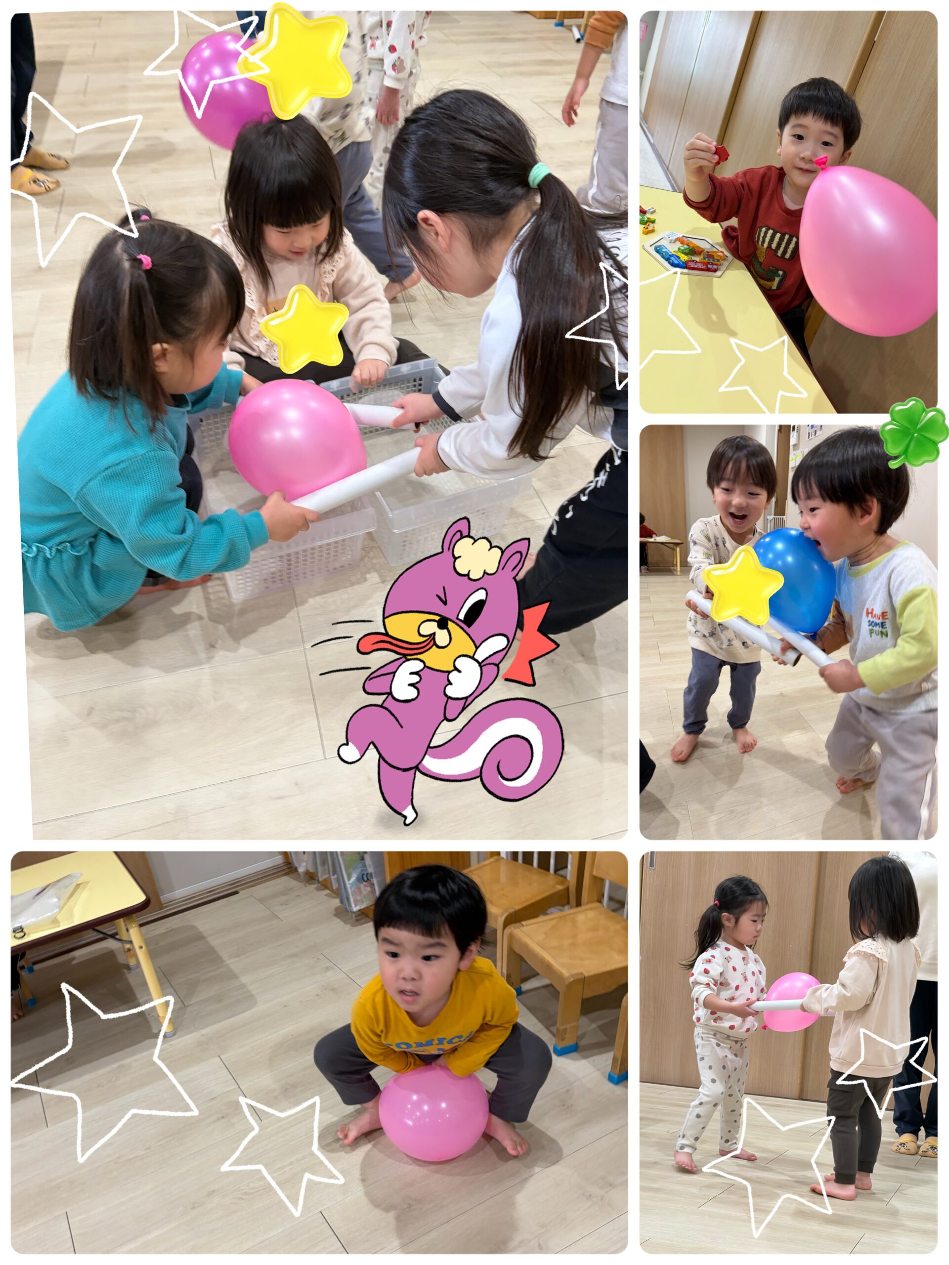 投げたり、掴んだり、色を覚えたり、おともだちと工夫しながら運んだり