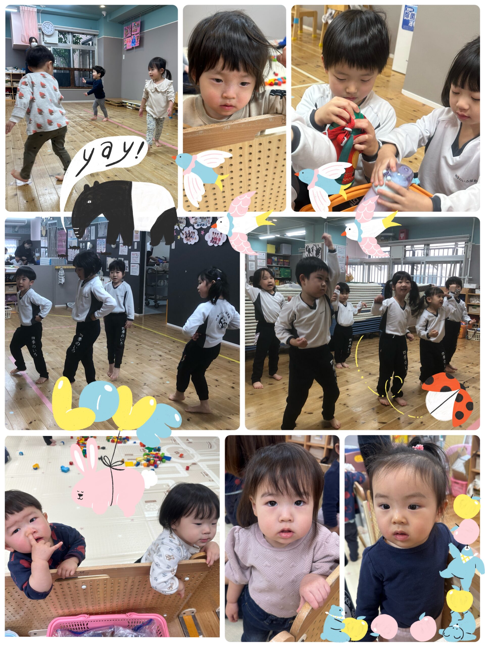 ひよこ・りす組さんは踊っているお兄さん、お姉さんを興味深々じっと見つめたり、一緒にダンスしたりしていましたよ🌟