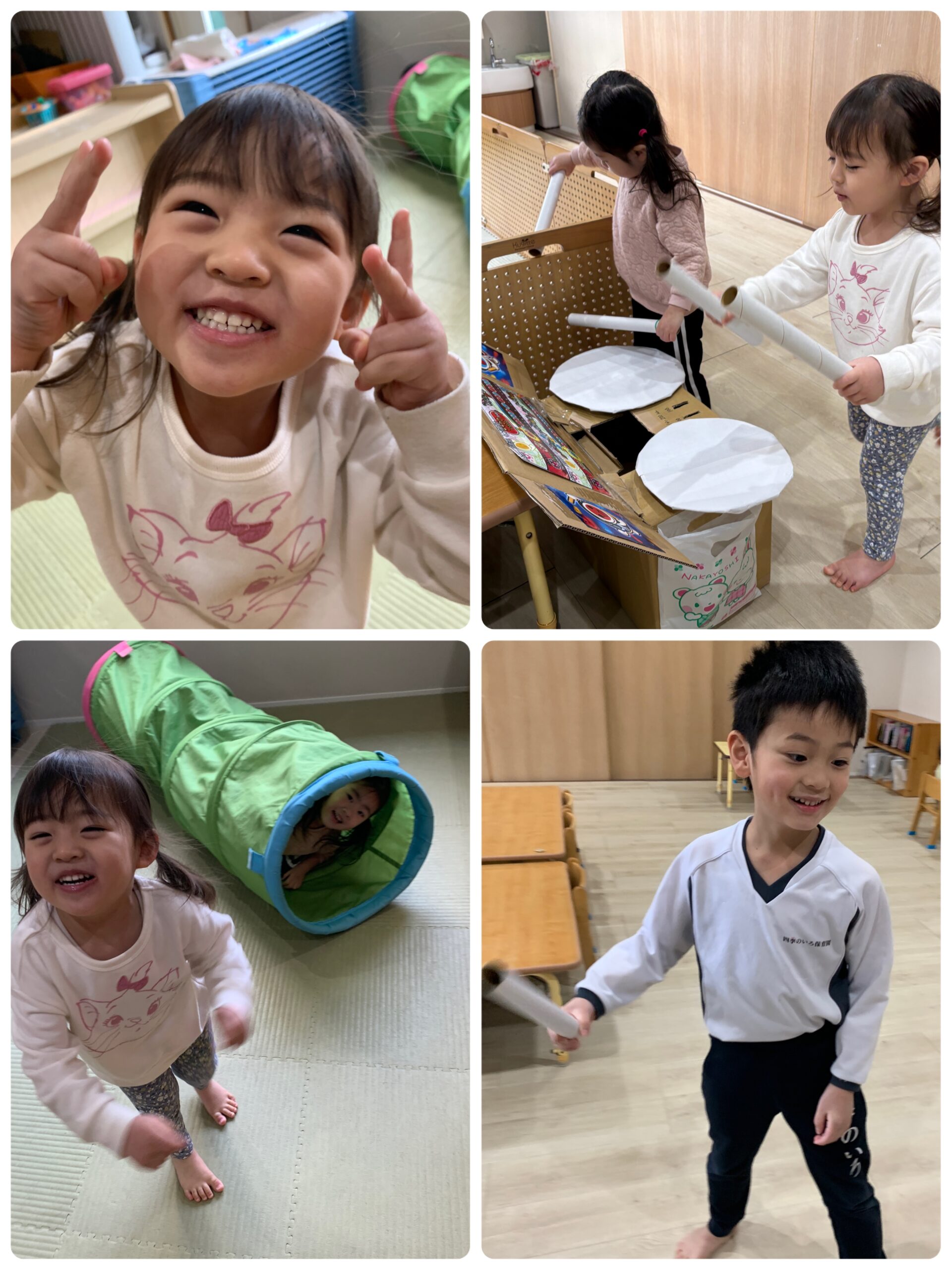 今日はトンネルやままごと遊び…昨日遊んだ太鼓のおもちゃなど、いろんな遊びを楽しみました☺️