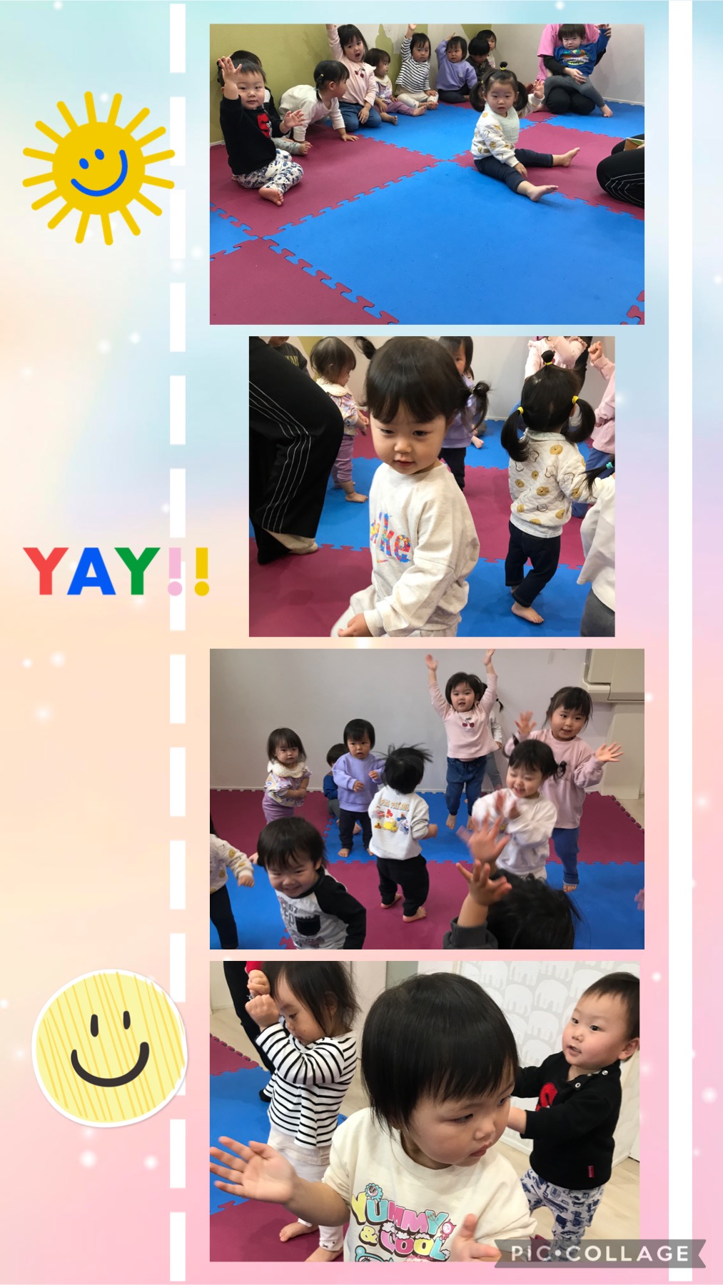 0.1歳児クラスのお友達はお部屋で体操をして身体を動かしましたよ☺️