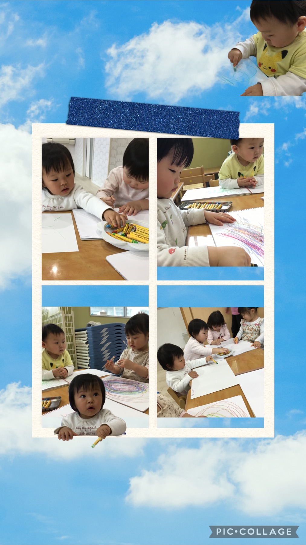0.1歳児のお友達はお部屋でお絵描きを楽しみました♪