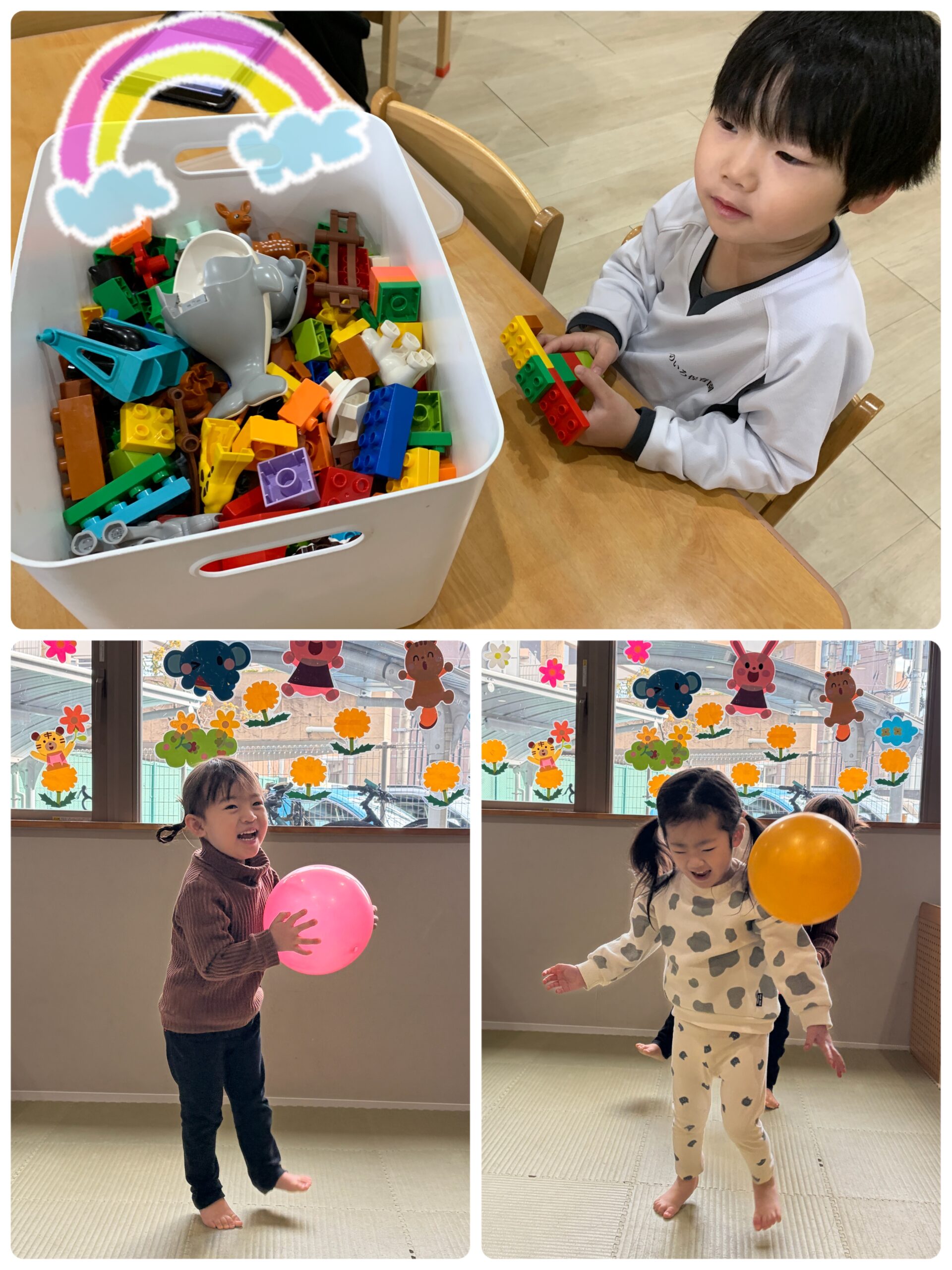 ボールで身体を投げたりキャッチしたり、元気な声が響き回っていましたよ😍