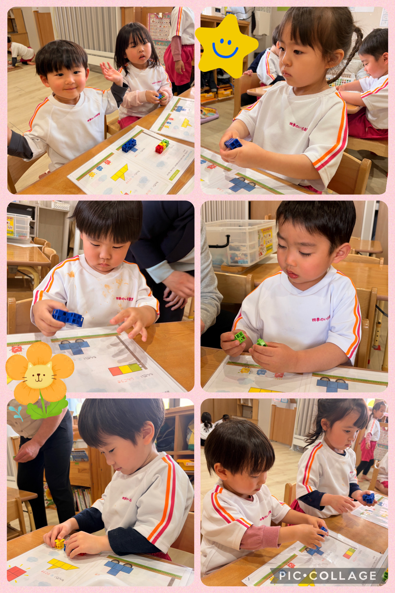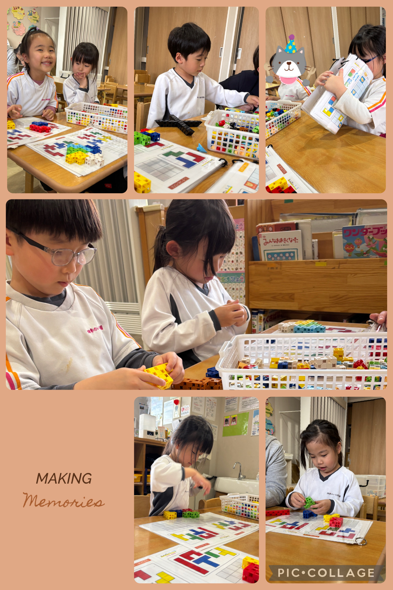 先生のお話をよーーく聞いてブロックに挑戦していました✨