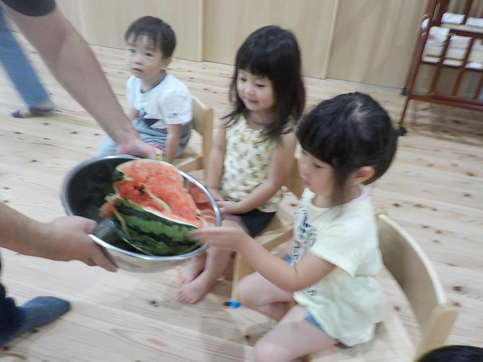 すいかの中の色・・・正解は「 あか !」子供たち大正解~♬